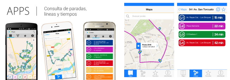 Aplicaciones de venta sobre Smartphones: Bilman Bus, Grupo Jiménez, PLM y Socibus.